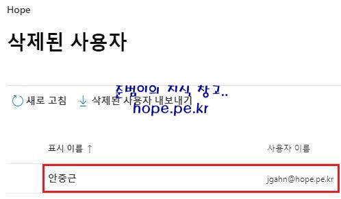 참고로 '삭제된 사용자' 클릭 후 '사용자 복원' 을 클릭하면 삭제된 사용자를 복원 가능 합니다.