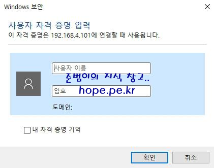 클라이언트에서 다시 원격 연결을 시도 하면, 사용자 자격 증명 입력 창이 발생하며 원격 연결이 가능 합니다.