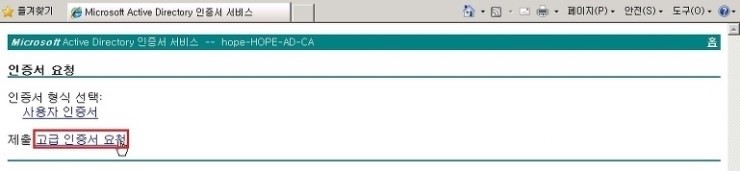 3. 인증서 요청 화면에서, 고급 인증서 요청 을 클릭 합니다.