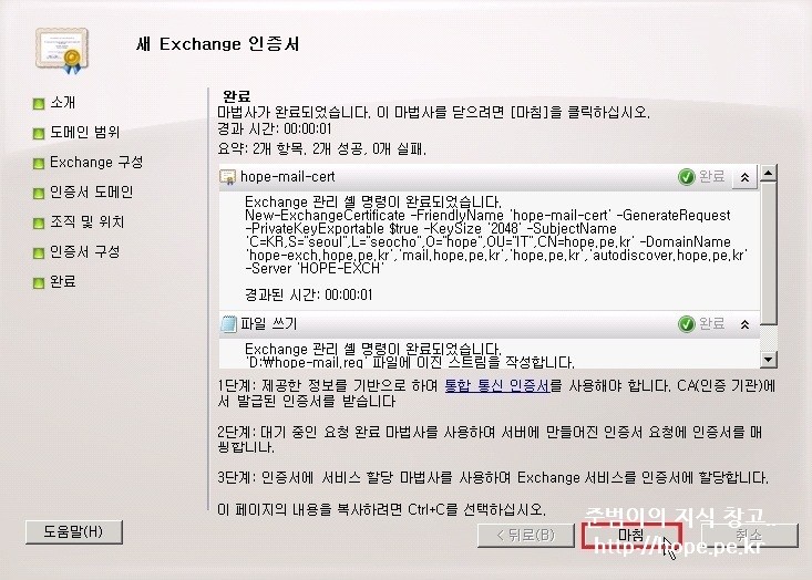 2-1. 새 Exchange 인증서 요청