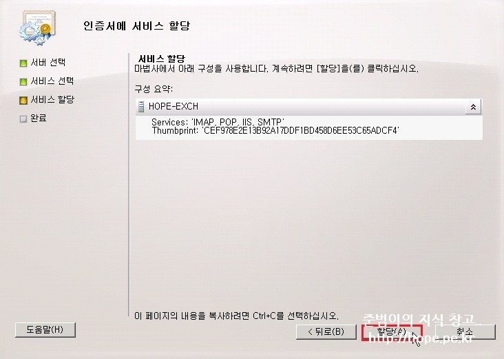 2-4. 인증서에 서비스 할당