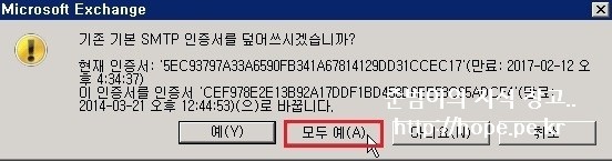 5. Microsoft Exchagne 창에서, 모두 예 를 클릭 합니다