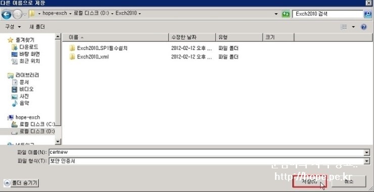 9. 다른 이름으로 저장 창에서, 인증서를 저장할 경로 지정 후 저장 을 클릭 합니다.