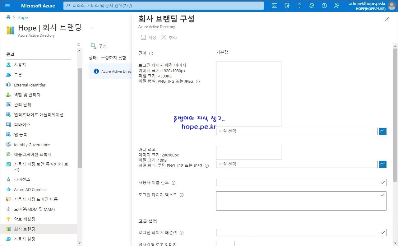 조직의 로그인 페이지에 브랜딩 추가 - Azure AD