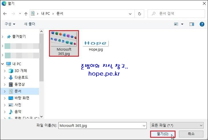 그리고 이미지 선택후 '열기' 를 클릭 합니다.
