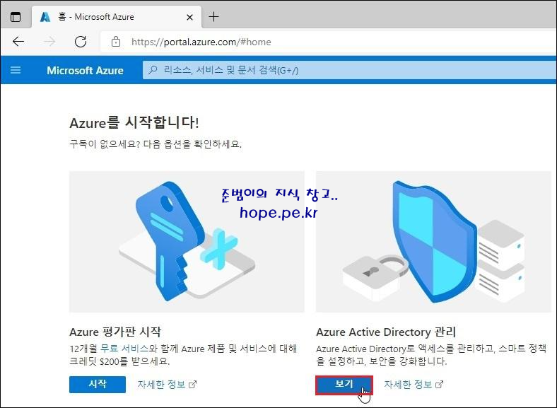 'Azure Active Directory 관리'의 '보기' 를 클릭합니다.