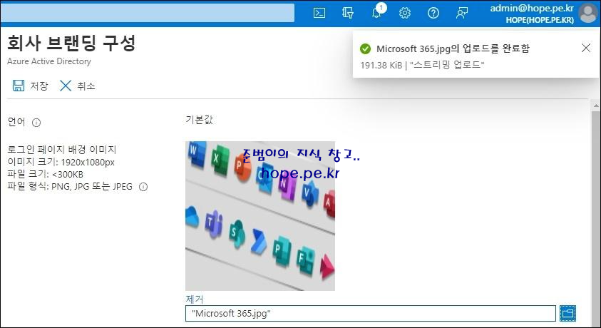 이상으로 "Office 365 로그인 페이지 배경 이미지 및 배너 로고의 변경" 방법에 대해 알아보았습니다.