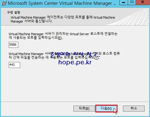 Microsoft System Center Virtual Machine Manager 에이전트(x64) 설치 마법사 시장 창에서, '다음' 을 클릭 합니다.