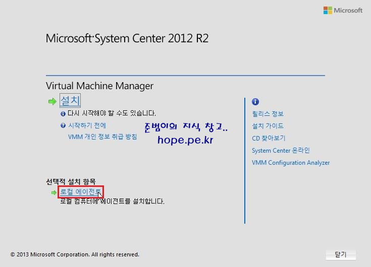 이번 포스팅 에서는 "System Center 2012 R2 Virtaul Machine Manager 에서 Workgroup 환경의 Hype-V Host 등록을 위한 에이전트 설치" 에 대해 알아보겠습니다.