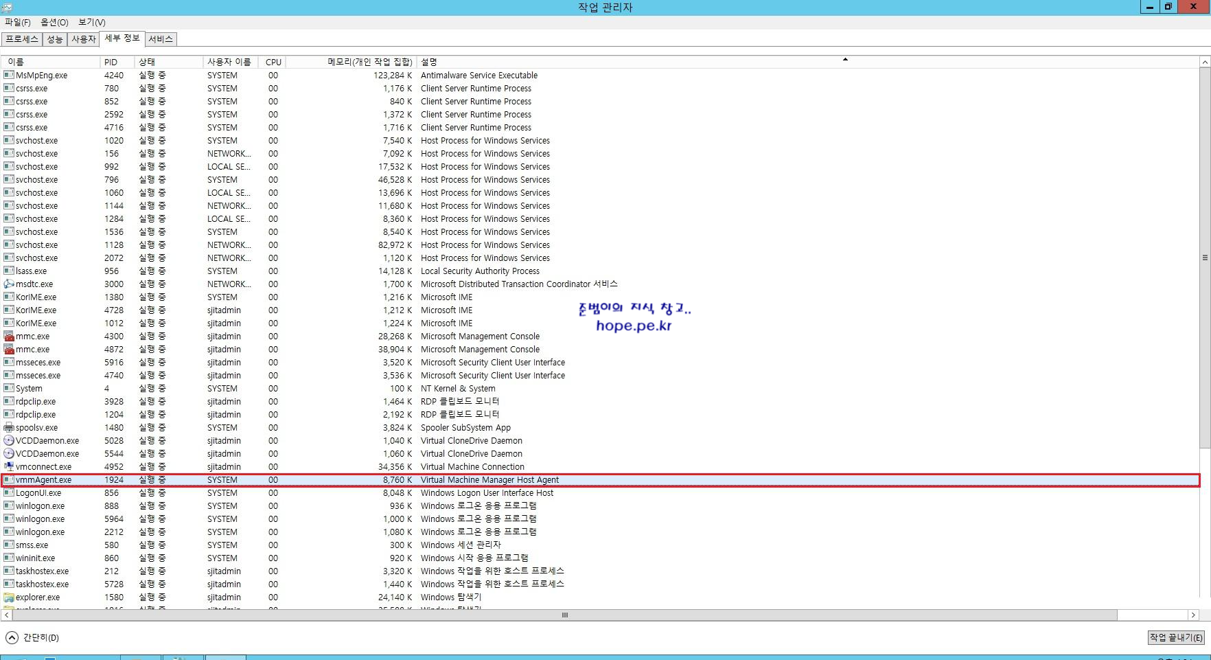 작업 관리자 확인 시 'vmmAgent.exe' 프로세스를 확인 할 수 있습니다.