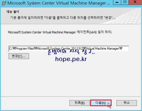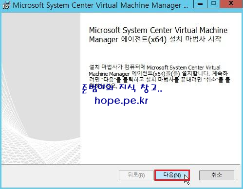 Microsoft System Center Virtual Machine Manager 에이전트(x64) 설치 마법사 시장 창에서, '다음' 을 클릭 합니다.
