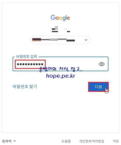 '비밀번호' 입력 후 '다음' 을 클릭 합니다.