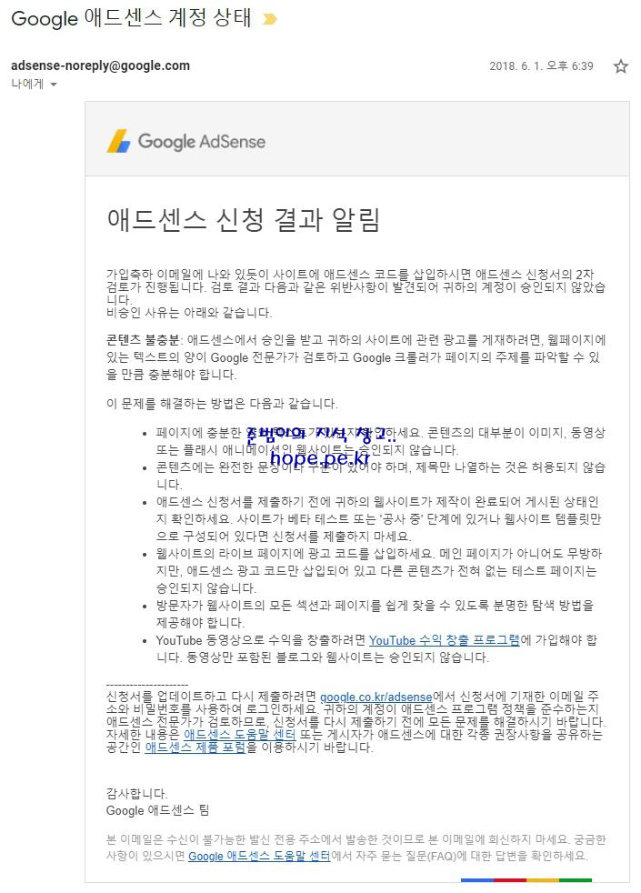 '콘텐츠 불충분' 사유로 승인 되지 않았습니다. ㅜ.ㅜ 문제 해결하는 방법을 정독하면서 블로그를 수정해야겠네요;;