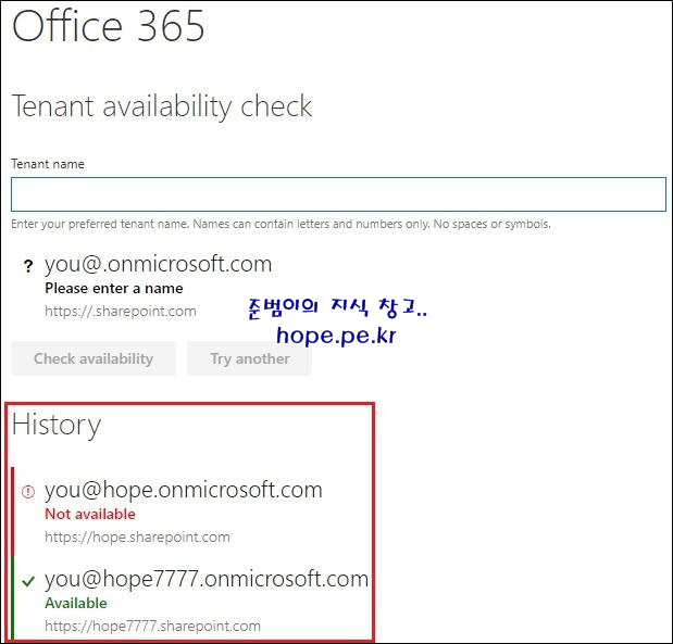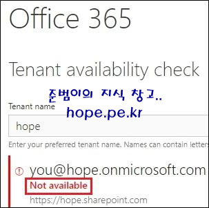 이번 포스팅에서는 "Office 365 테넌트 이름 사용 가능 여부 확인 방법" 에 대해 알아보겠습니다.