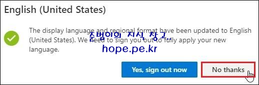 2. 웹용 Outlook에 최초 로그인시 언어를 설정 합니다. 하지만 위 표시 언어 설정이 웹용 Outlook 표시 언어가 다를 경우 위 표시 언어 설정으로 다시 설정 됩니다.
