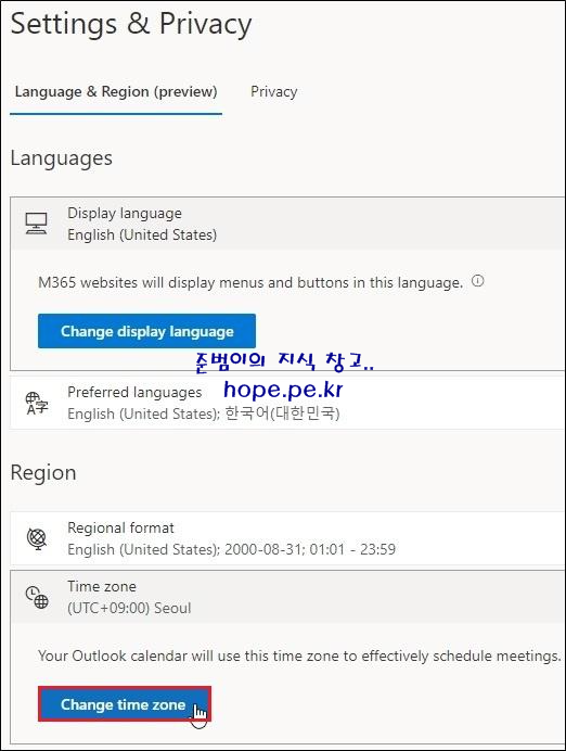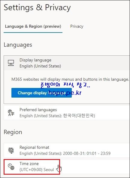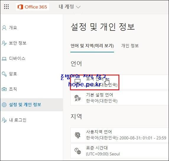 이상으로 "Office 365 표시 언어와 표준 시간대 변경" 방법에 대해 알아보았습니다.