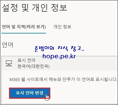 이번 포스팅에서는 "Office 365 표시 언어와 표준 시간대 변경" 방법에 대해 알아보겠습니다.