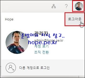 우측 상단의 '프로필 > 로그아웃' 을 클릭 합니다.