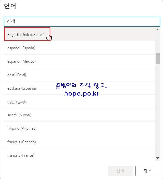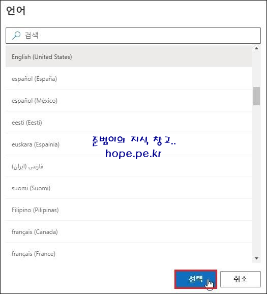 Cf) 본 포스팅에서는 'English (United States)' 를 선택 했습니다.
