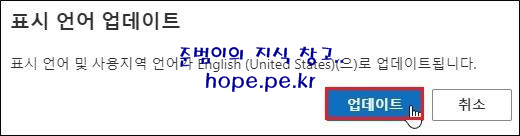표시 언어 업데이트 창에서, '업데이트' 를 클릭 합니다.