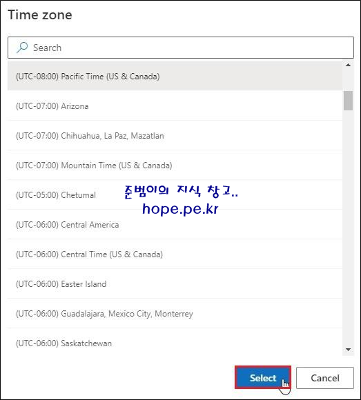 '변경하고자 하는 타임존' 을 클릭 합니다.