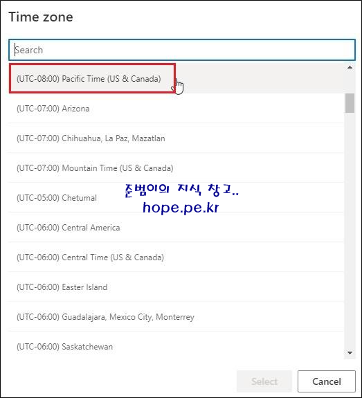 '변경하고자 하는 타임존' 을 클릭 합니다.