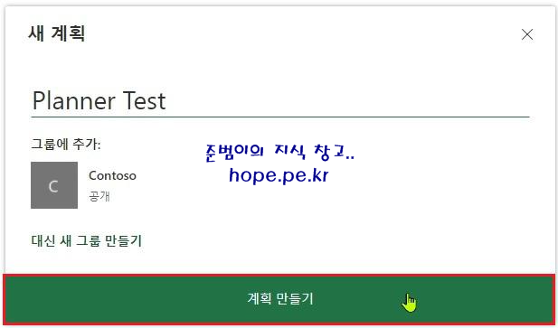 '계획 만들기' 를 클릭 하면 기존 Microsoft 365 그룹에 추가 하게 됩니다.
