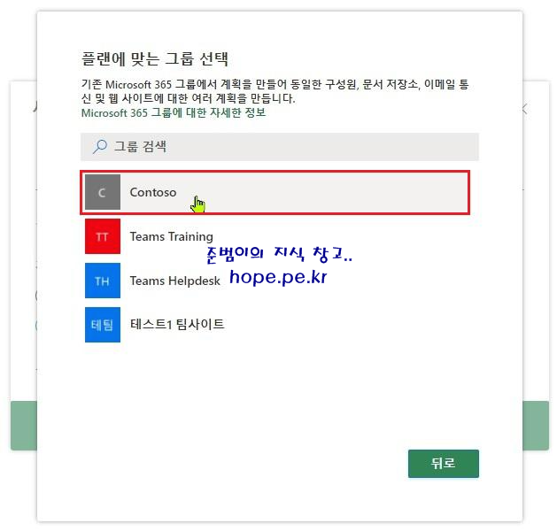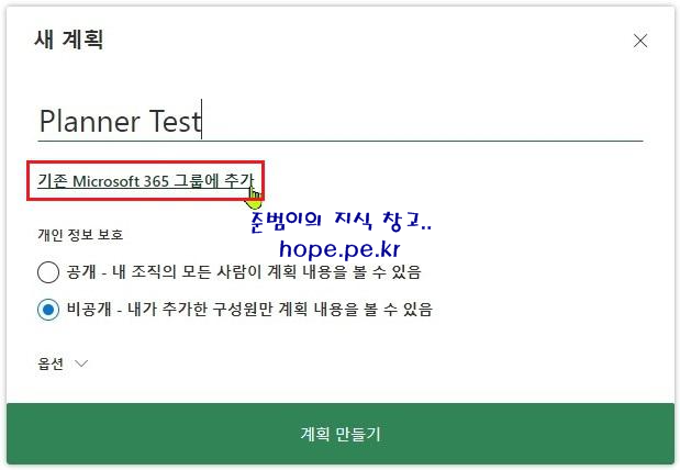 참고로 새 계획 생성시 '기존 Microsoft 365 그룹에 추가'를 클릭 하면