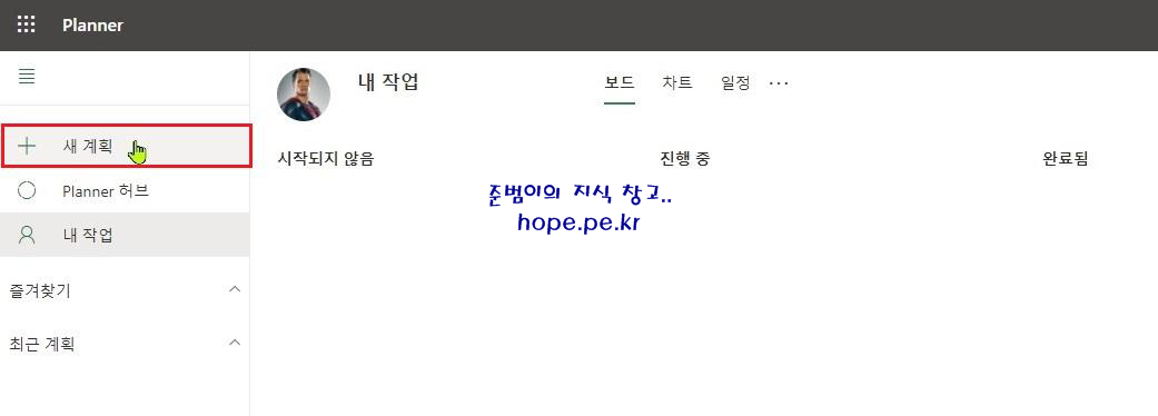 Planner (https://tasks.office.com) 서비스에 접속 후, '새 계획' 을 클릭 합니다.