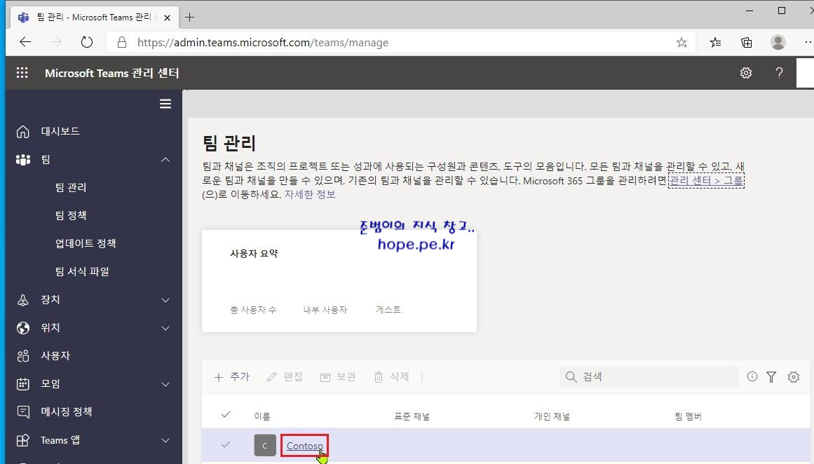 두번째로 전역 관리자 관점에서 팀 이름 변경 방법 입니다.