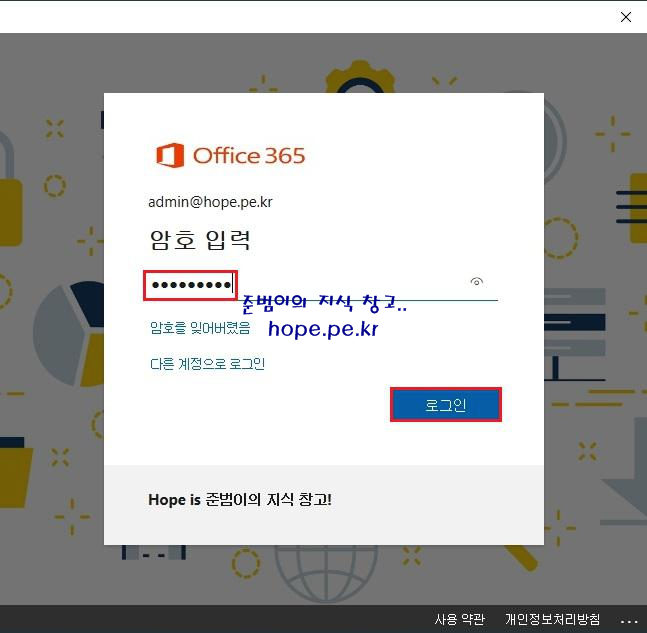 암호 입력 창에서, '암호' 입력 후 '로그인' 을 클릭 합니다.