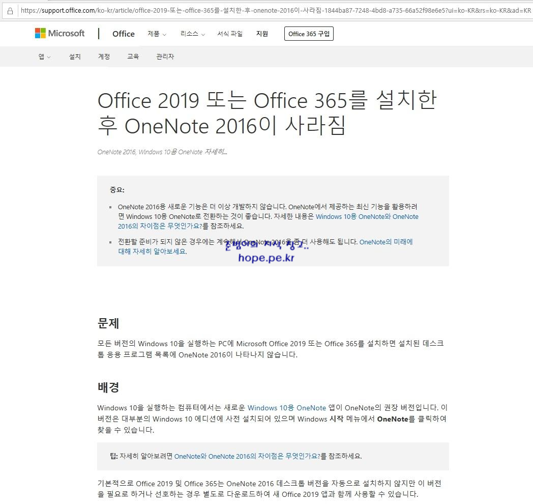 참고: Office 2019 또는 Microsoft 365을 설치한 후 OneNote가 누락 됨