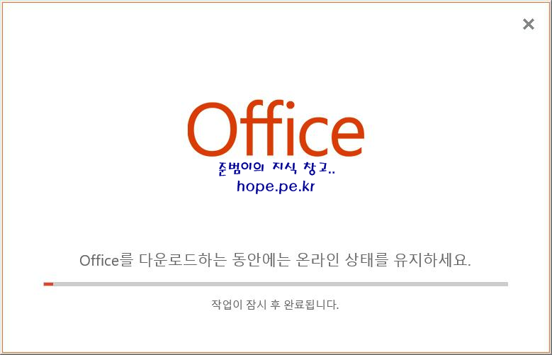 Office를 다운로드하는 동안에는 온라인 상태를 유지하세요. 창이 발생하며, OneNote 설치가 진행 됩니다.