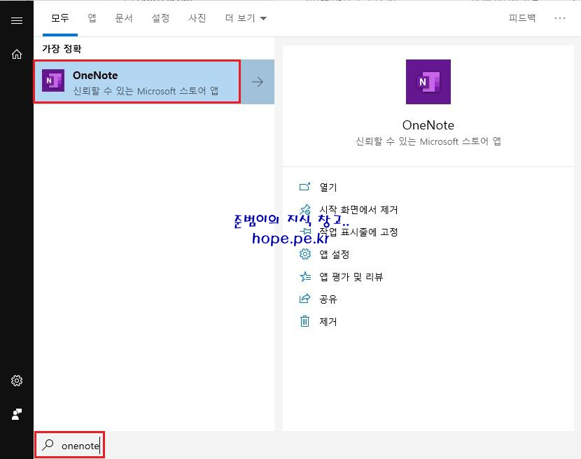 Office 365 Proplus 설치 후 OneNote 를 실행하기 위해 시작 - 'OneNote' 를 입력 하면 OneNote 프로그램이 아닌 OneNote 앱 (Windows 10 앱) 만 검색 됩니다.