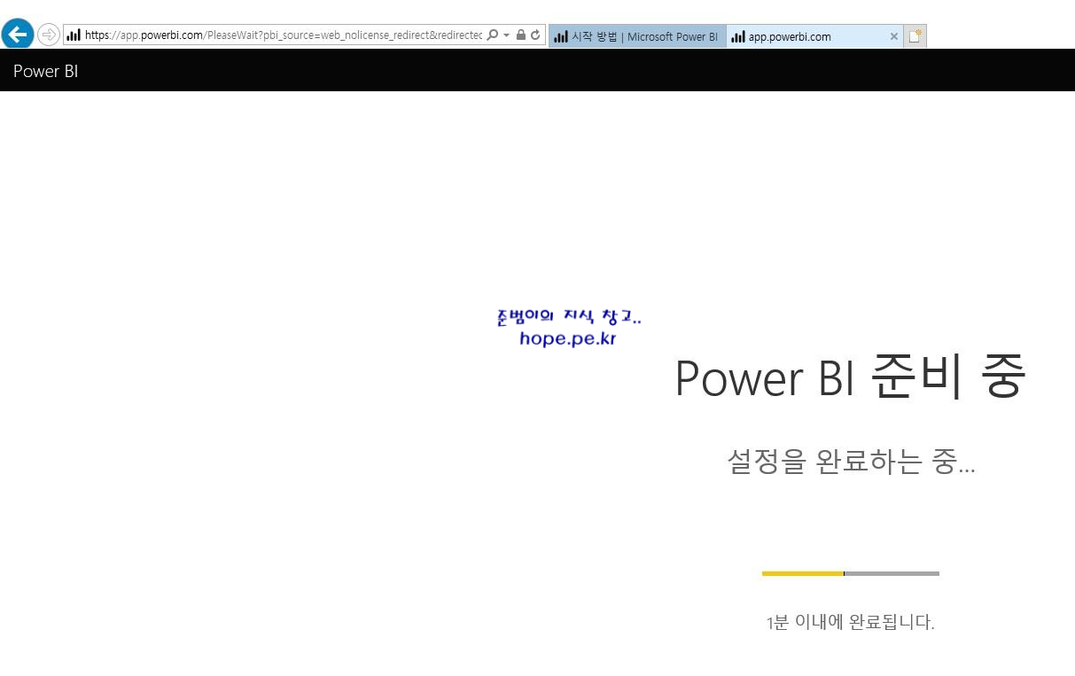 Power BI 준비 중 화면이 발생 합니다. 일정 시간 후 설정이 완료 됩니다.