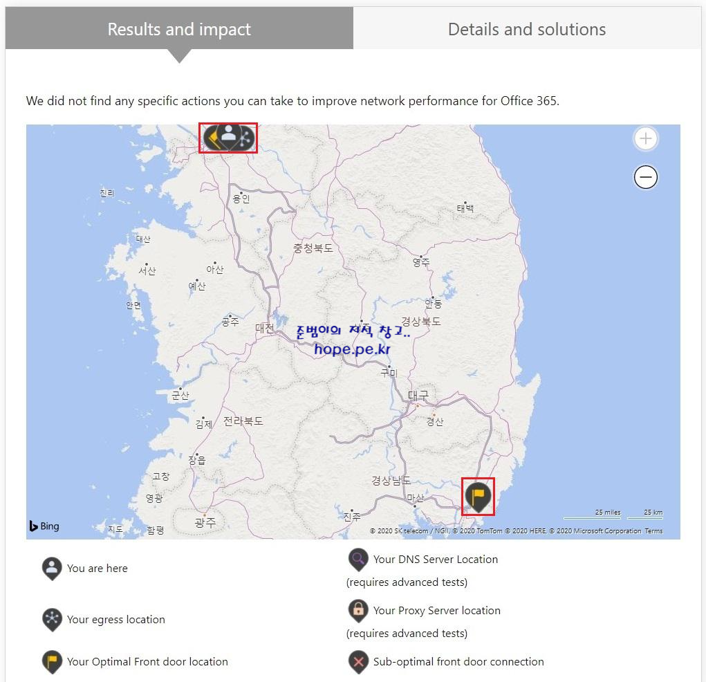 일정 시간 후 현재 위치에서의 Office 365 Network 연결 테스트 결과가 표시 됩니다.