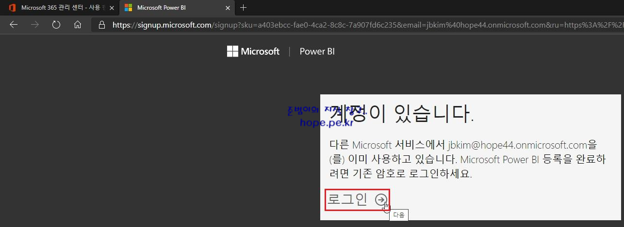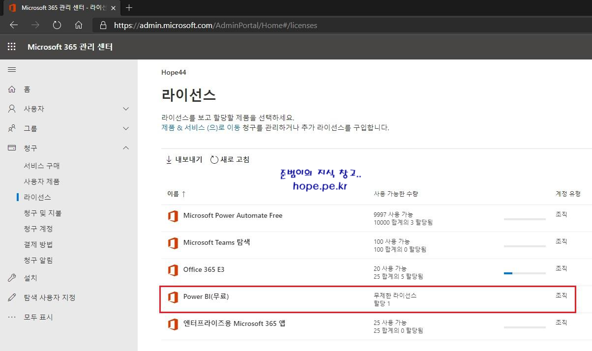 참고로 라이선스 화면 입니다. Power BI(무료)가 추가 되었습니다.