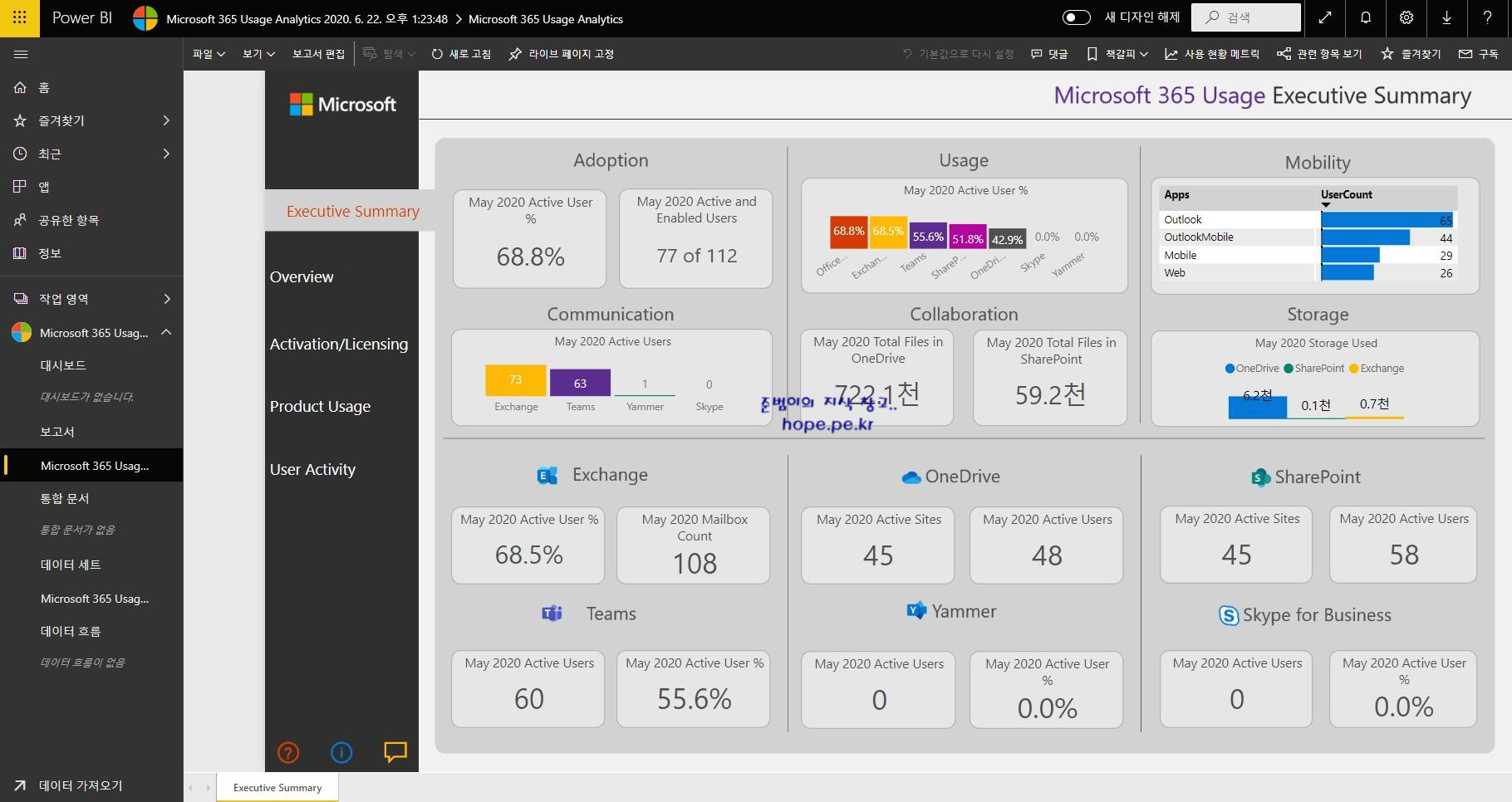 이상으로 "Power BI 에서 Microsoft 365 사용 현황 분석을 사용하도록 설정" 하는 방법에 대해 알아보았습니다.