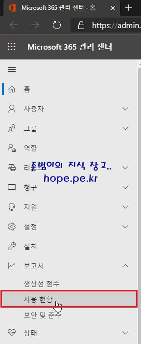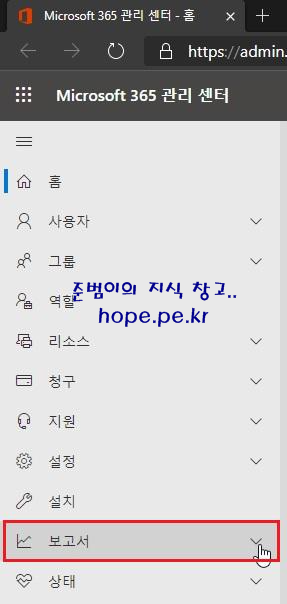 'Microsoft 365 Usage Analytics - 보고서' 를 클릭 합니다.