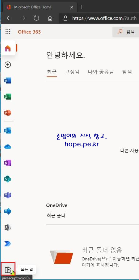 Office.com 으로 돌아온 후 '모든 앱' 을 클릭 합니다.
