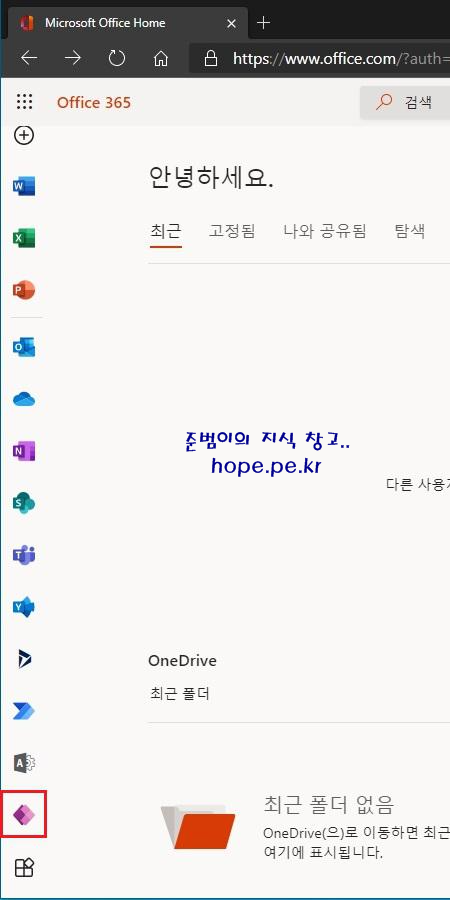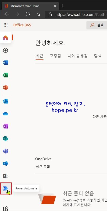 그리고 'Office.com' 에도 'Power Automate' 앱 이 고정되어 있습니다. 'Power Automate' 를 클릭 합니다.