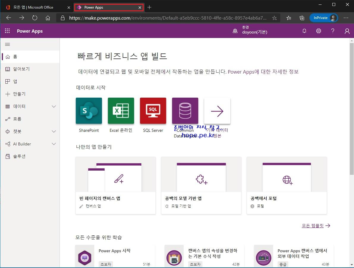 'Power Apps' 가 새 탭 에서 열립니다.