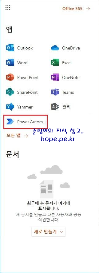 그리고 'Office.com' 에도 'Power Automate' 앱 이 고정되어 있습니다. 'Power Automate' 를 클릭 합니다.