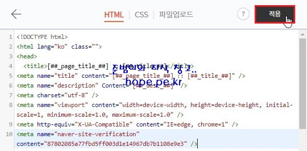 복사한 메타 태그를 <head> 태그와 </head> 태그 사이 적당한 위치에 '붙여넣기' 합니다.