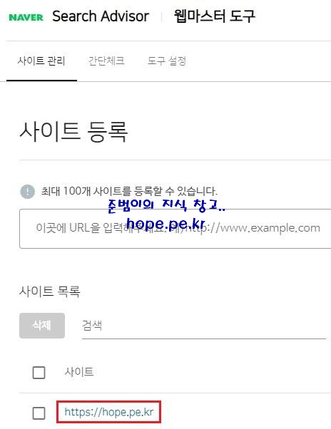 정상적으로 사이트 등록 목록에 티스토리 블로그가 등록 되었음을 확인 합니다.