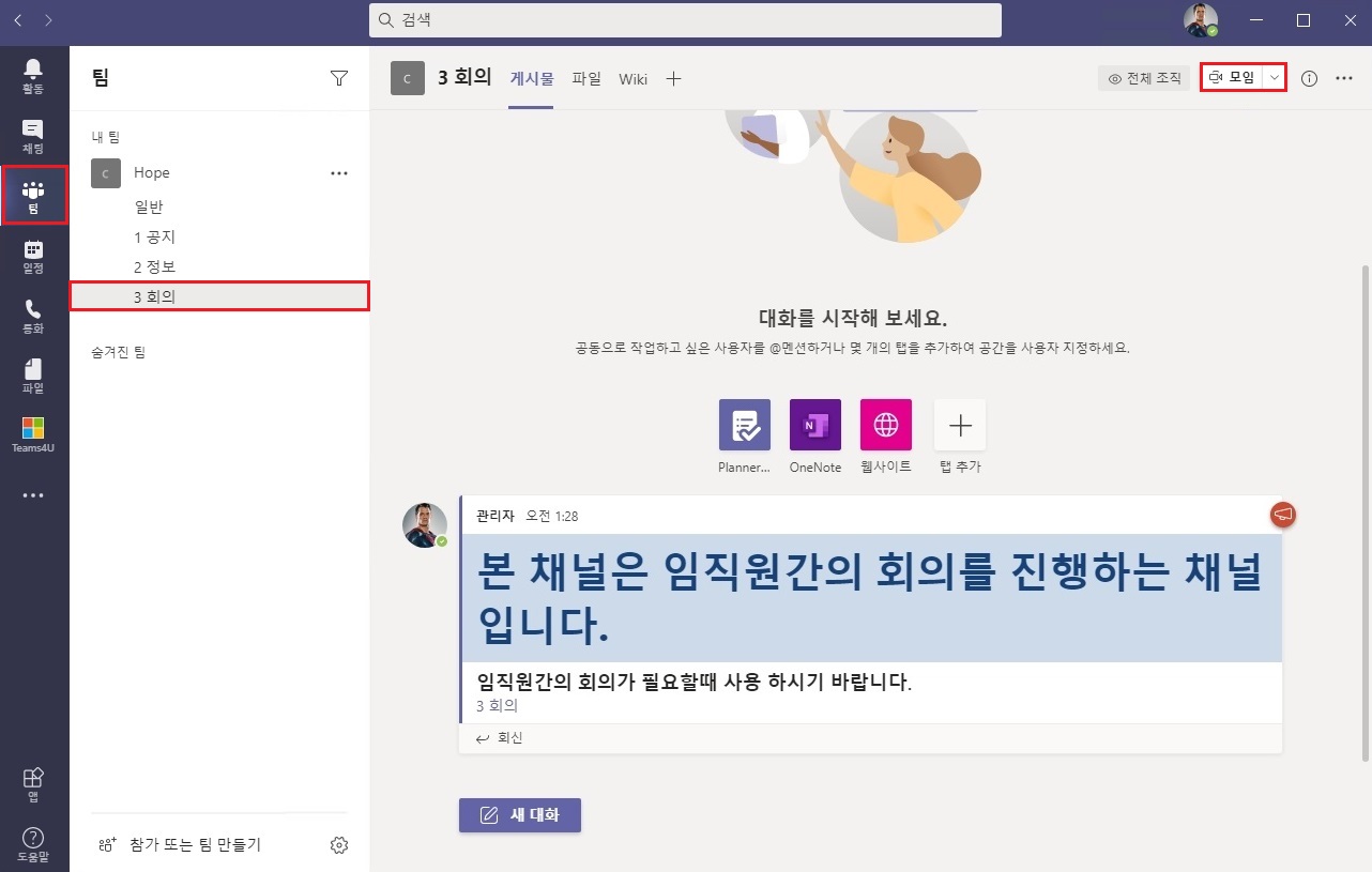 이상으로 "Teams 채널 모임에서 제안" 에 대해 알아보았습니다.