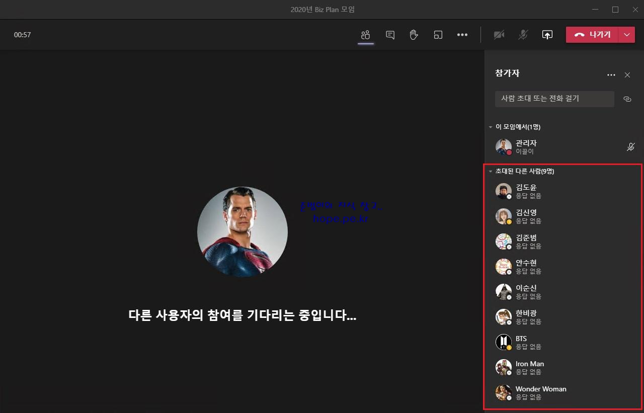 참고로 채널에서 모임이 아닌, '일정' 에서 참가자 지정 후 생성한 모임에서는 아래 스샷과 같이 '제안' 기능 대신 '초대된 다른 사람' 이 표시 됩니다.