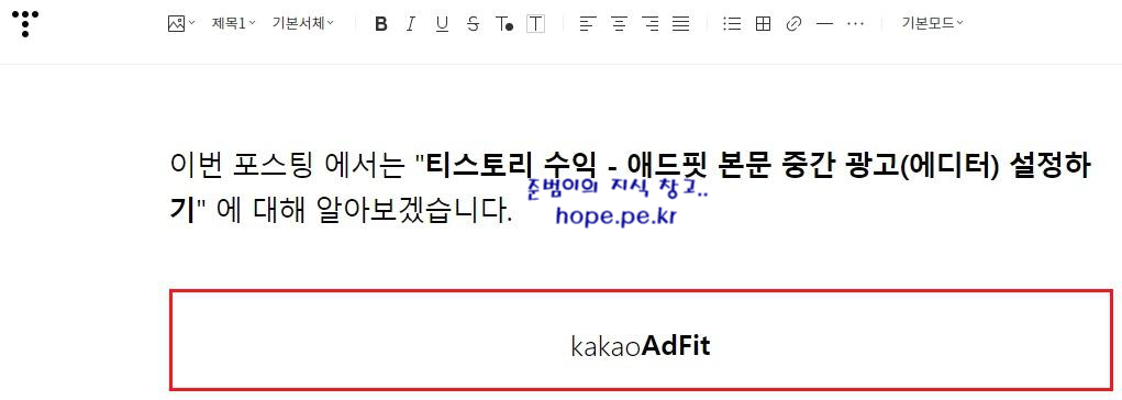 이번 포스팅 에서는 "티스토리 수익 - 애드핏 본문 중간 광고(에디터) 설정" 에 대해 알아보겠습니다.