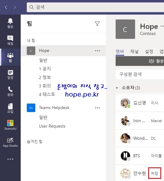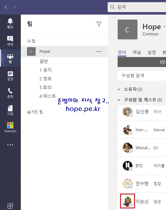 Cf) Teams 캐쉬 삭제 후 재로그인 하면 아래와 같이 업데이트 된 사진을 확인할 수 있습니다.
