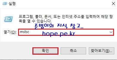 원격 데스크톱 연결(MSTSC)은 실행창 (Windows Key + R Key)에서 'mstsc' 입력 후 '확인' 을 클릭 하면